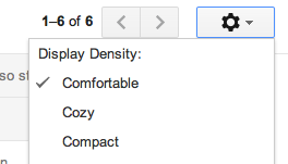 The inbox display options include comfortable, cozy, and compact and can be accessed by clicking the settings gear on the top right of your inbox.